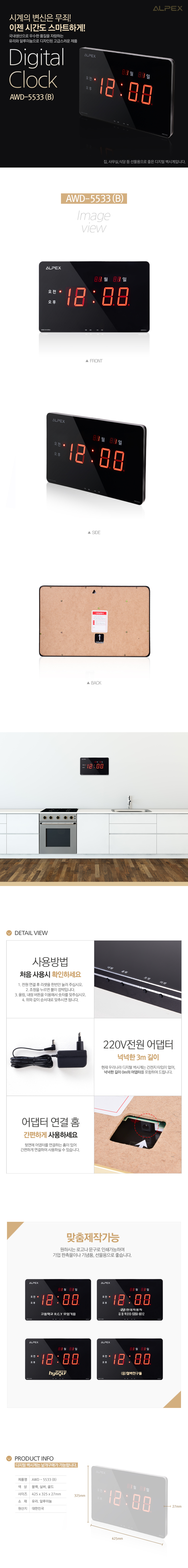알펙스디지털벽시계 AWD5533(B)