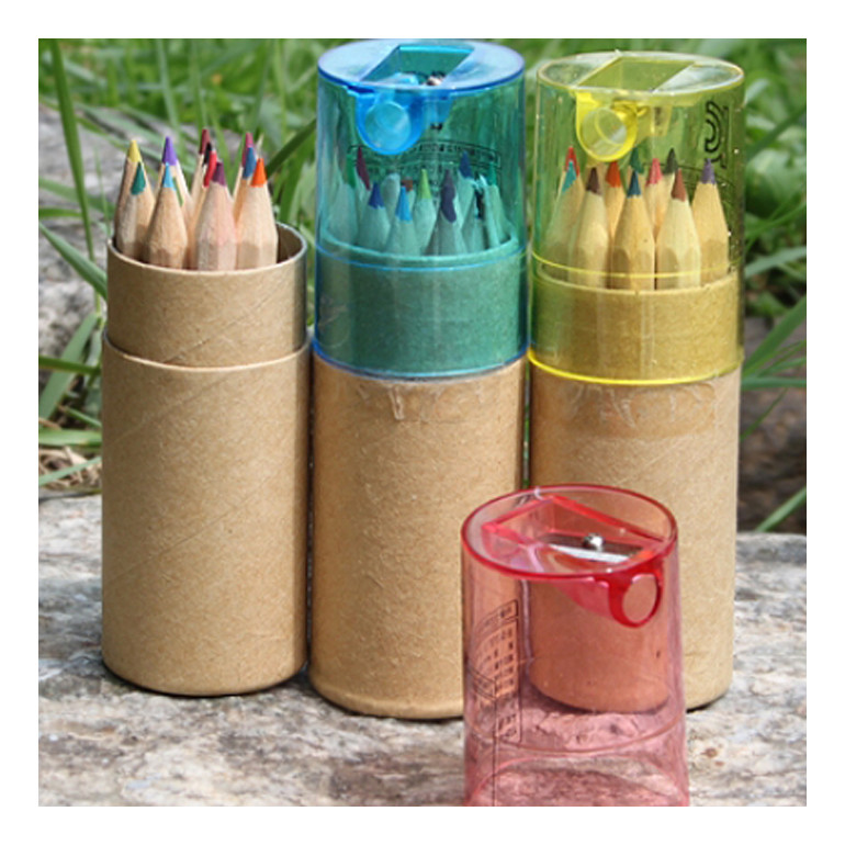원통케이스뚜껑 연필깍이+12색 색연필세트