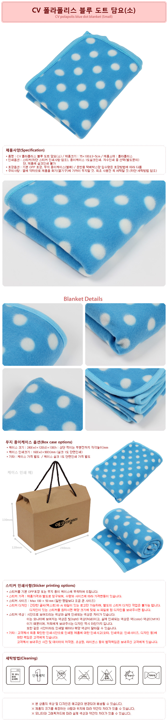 CV 폴라폴리스 블루 도트 담요(소)