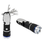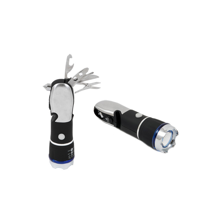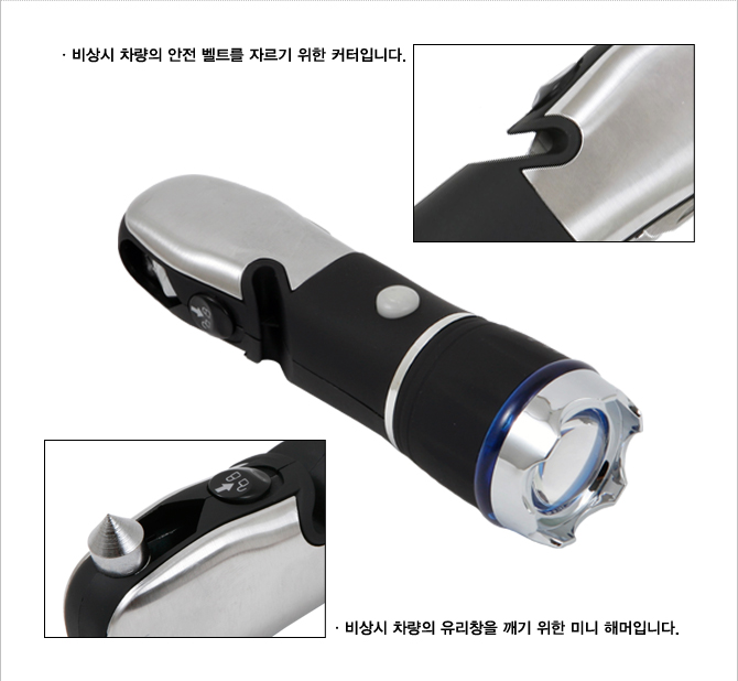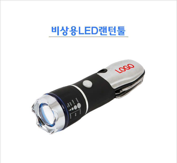 | 구 분 | 내 용 | | 제품특징 | * 깔끔하고 세련된디자인으로 휴대하기 편리함 * LED랜턴기능, 라이트 줌 기능, Tool set기능 * 3단 밝기 모드.(100%/50%/깜빡이등) * Tool set-칼,오프너,육각 렌치,십자드라이버,가위,미니 해머,비상용 안전벨트 커터로 구성 * 등산, 낚시, 캠핑, 여행시 꼭 소지할 필수품 | | 제품사이즈 | * 150 * 42 * 42 mm | | 색상 및 재질 | * 색상 : Black * 재질 : carbon steel(탄소강) | | 인쇄 사이즈 | * 40 * 12 mm |