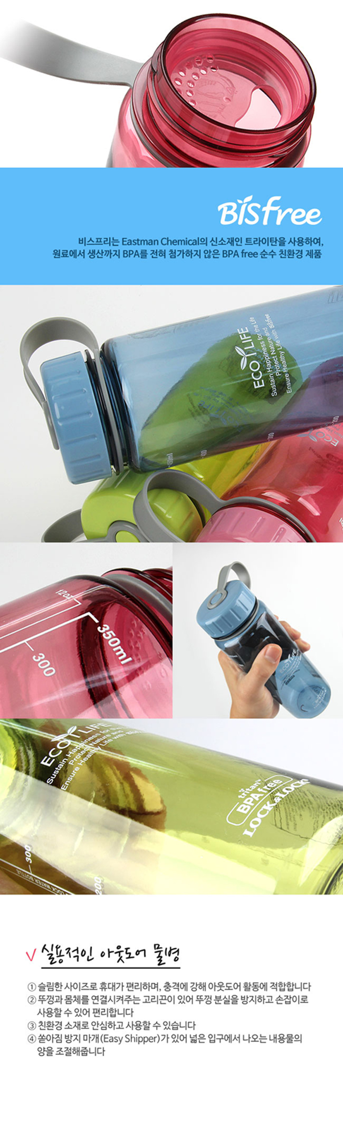 몸체:트라이탄, 캡/마개: PP, 고리끈:PE
