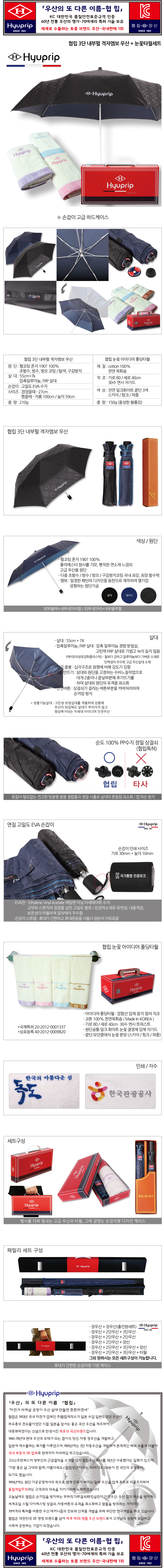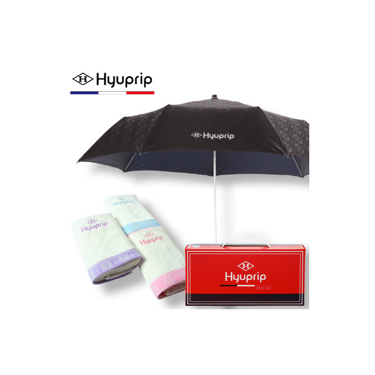 협립 3단 내부펄코팅 격자엠보 우산+눈꽃타월세트