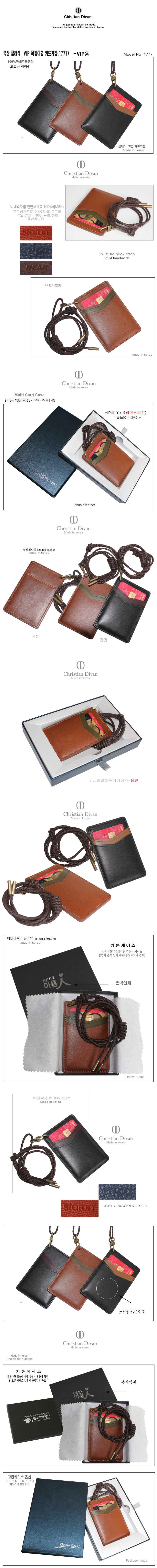 ◆국산100% 클래식 VIP목걸이형 카드지갑(1777)◆-재질:이태리수입 통가죽-원산지:100%국내제작-색강:블랙//브라운칼라중 택일-size:75*110mm-Printing size:40*50mm-인쇄:앞면또는 뒷면하단에 각인(열을 가하여 가죽을 누름)-구성:앞면에카드칸2개,뒷면1개