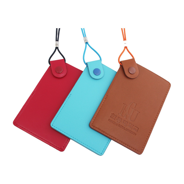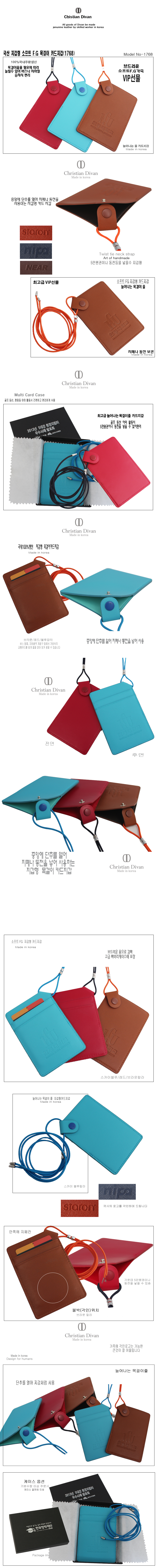 ◆국산100% 브드러운 소프트FG 천연소가죽 목걸이형 카드지갑(1768)◆-재질:브드러운 소프트 FG-원산지:100%국내제작-색강:레드/스카이블루/화이트브라운칼라중 택일-size:75*110mm-Printing size:40*50mm-인쇄:앞면또는 뒷면하단에 각인(열을 가하여 가죽을 누름)-구성:중앙 지폐나동전칸1개,뒷면 신분증 또는 카드칸2개