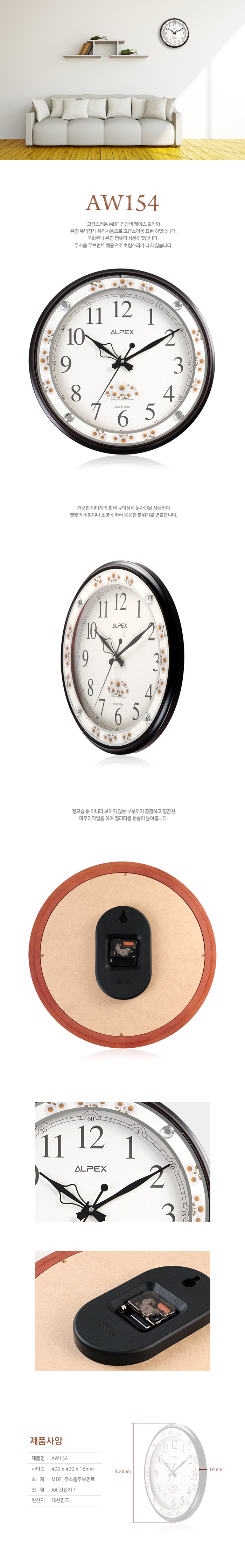 알펙스벽시계 AW-154(벽걸이시계)