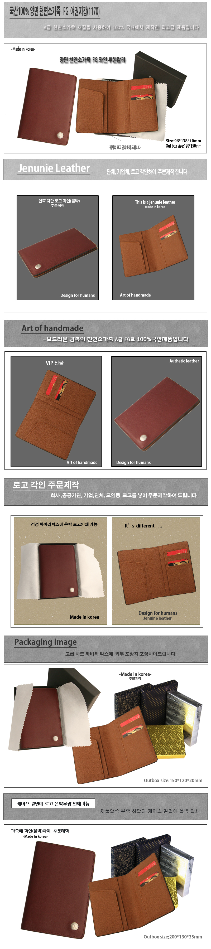 ◆국산100% 천연 양면 소프트FG 소가죽 고급 여권지갑(1170)◆ -구성:국산 100% 천연양면 소프트FG 소가죽 여권지갑 -각인:지갑 안쪽 우측 하단 각인(불박-금형으로 가죽에 열을 가하여 누름) -포장:고급개별 검정싸바리케이스(케이스 겉면 은박무광 로고인쇄가능) ※기본수량 100개 이상 주문시 불박(각인)무료