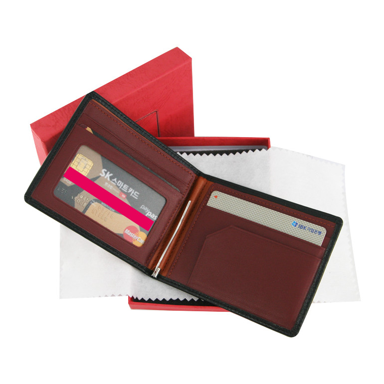 ◆국산 100% 양면 천연소가죽 쉬렁크/FG 천연소가죽 와인칼라 머니클립(1116)-국산 양면 천연소가죽 쉬렁크/FG 머니클립 외부 쉬렁크 천연소가죽+내부 FG천연소가죽 와인칼라-크기: 머니클립(85*105*10mm),아웃박스크기:125*95*20mm-인쇄: 각인-지갑겉면 우측 하단 또는 지갑 안쪽 우측 하단 중앙에 각인(불박-가죽에 열을 가하여금형 조각으로 누름)※기본수량 100개 이상 주문시 무료-제작기간:4~8일