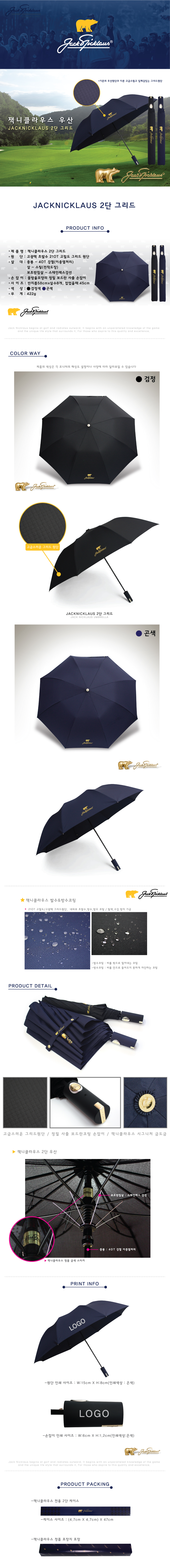 잭니클라우스 2단 고급그리드원단우산