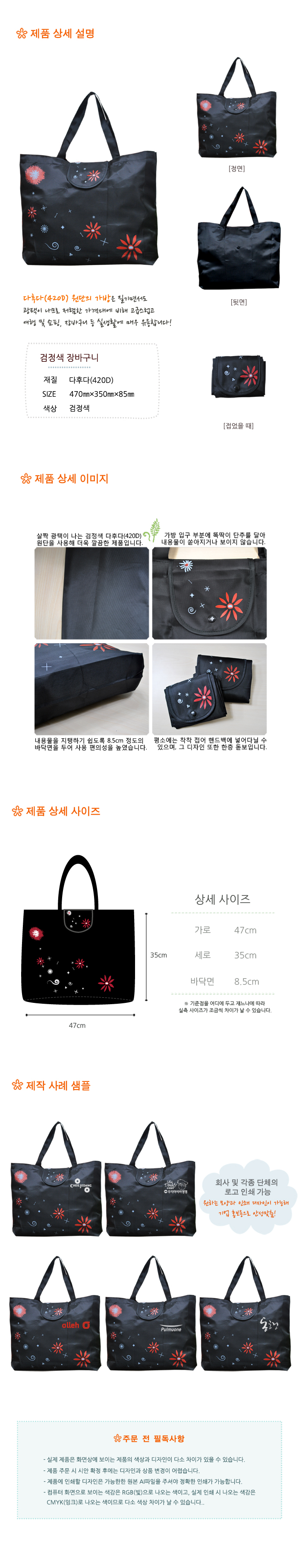 에코사랑 검정장바구니/시장가방/폴딩가방/휴대간편