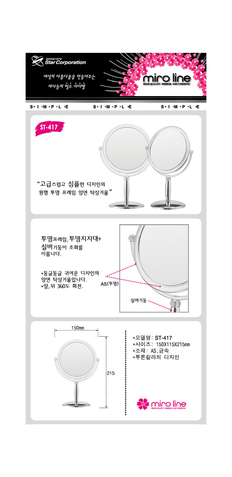 ST-417 심플원형 양면탁상거울