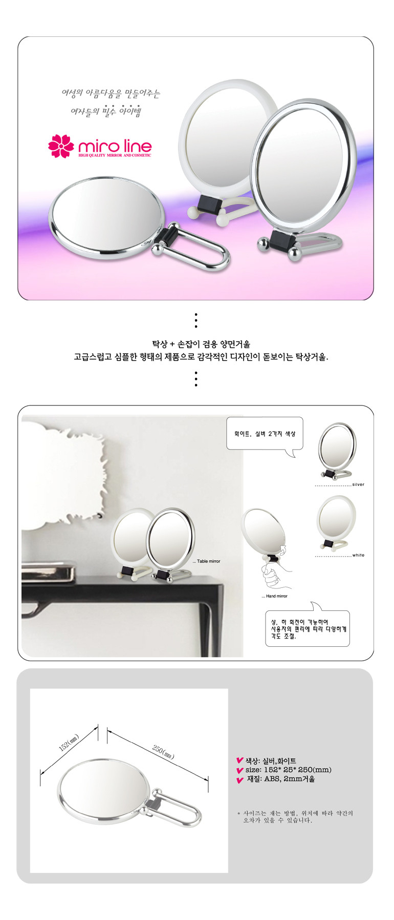 손잡이탁상거울HM-330 /2배확대양면거울