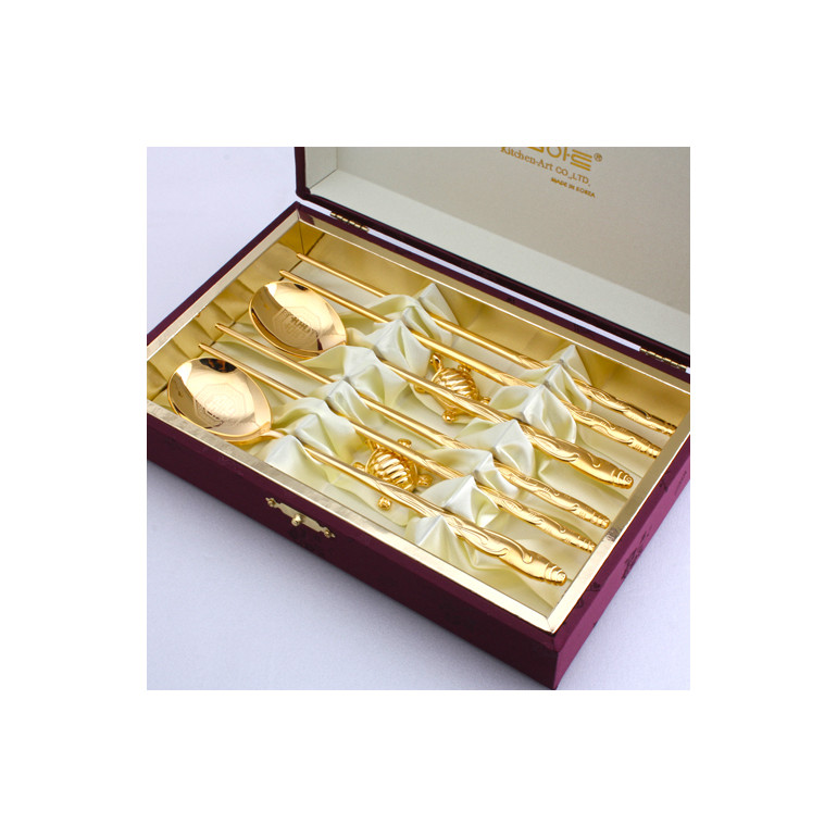 구성 수저2벌+금도금거북수저받침2+비단케이스